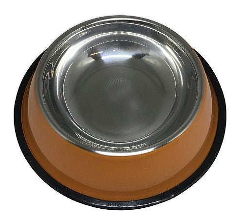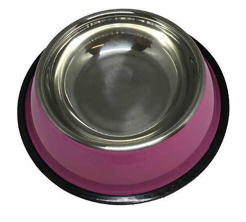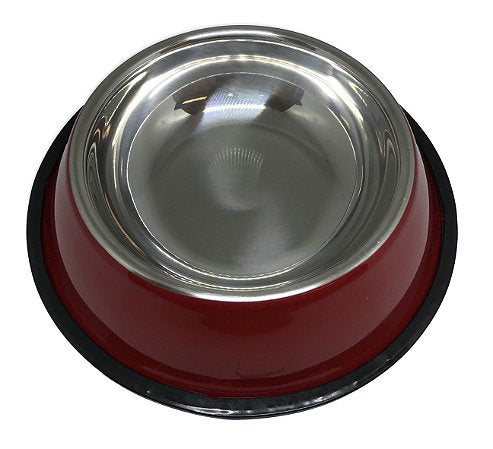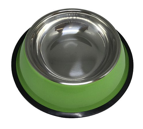 Comedouro/bebedouro inox colorido, não enferruja, com borracha anti derrapante, garantindo praticidade e higiene.