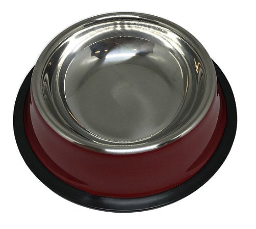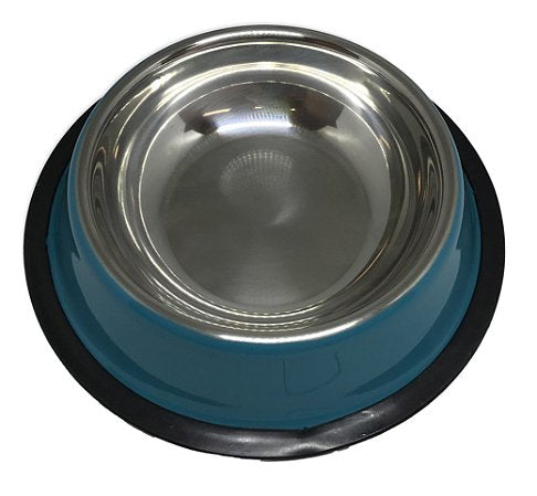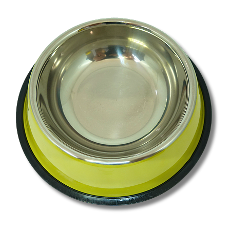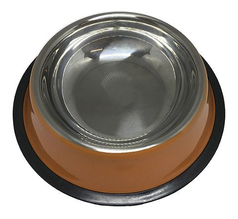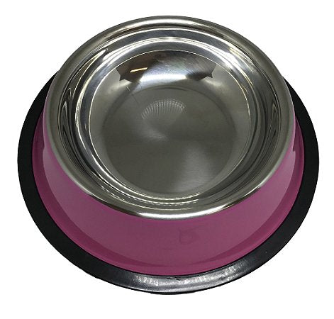 Comedouro/bebedouro inox colorido, não enferruja, com borracha anti derrapante, garantindo praticidade e higiene.